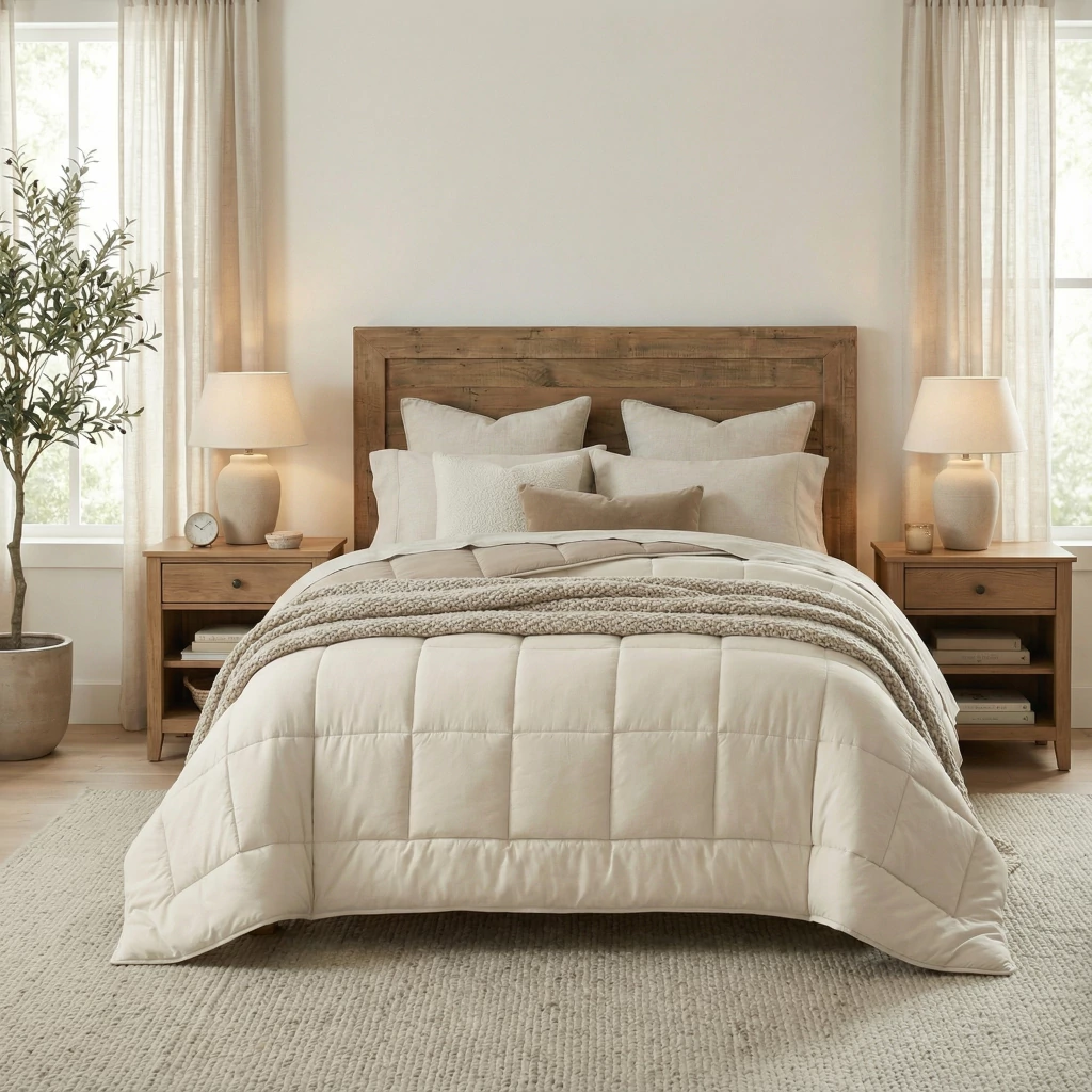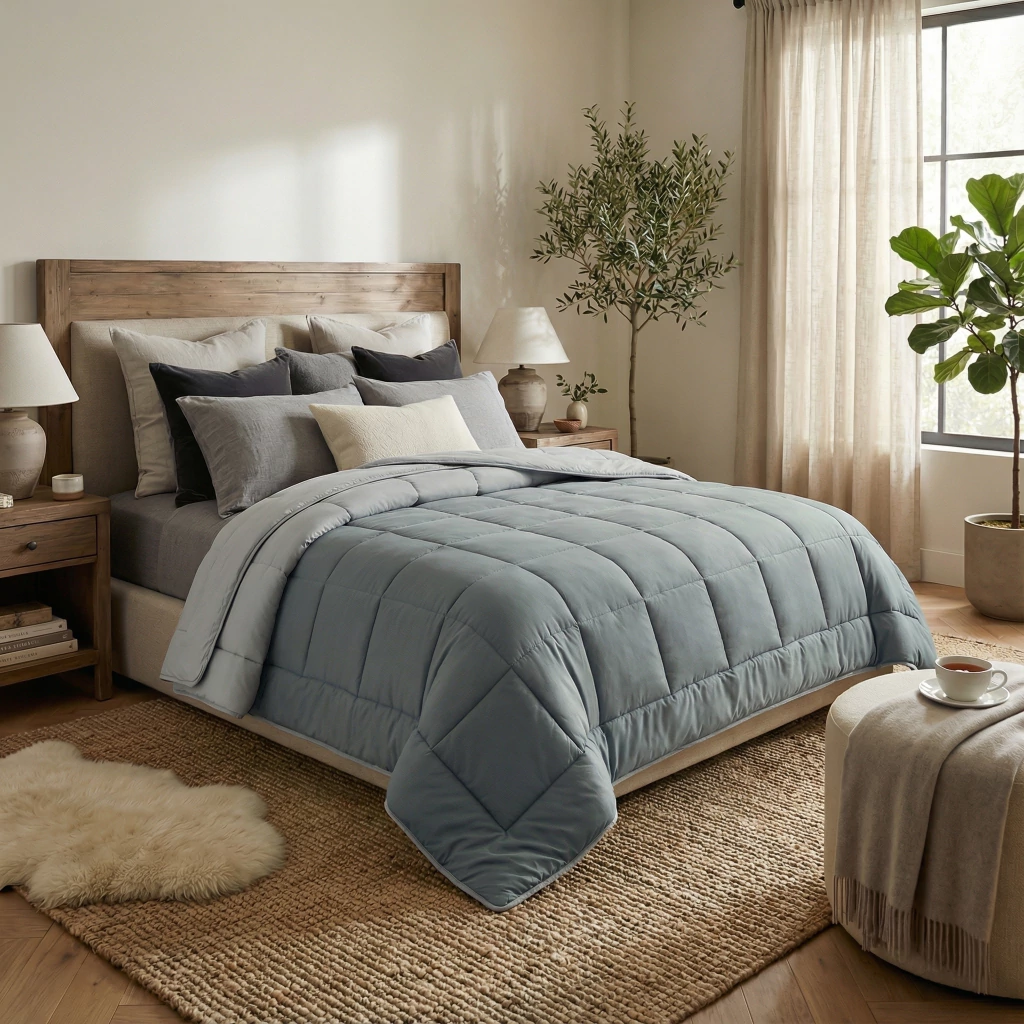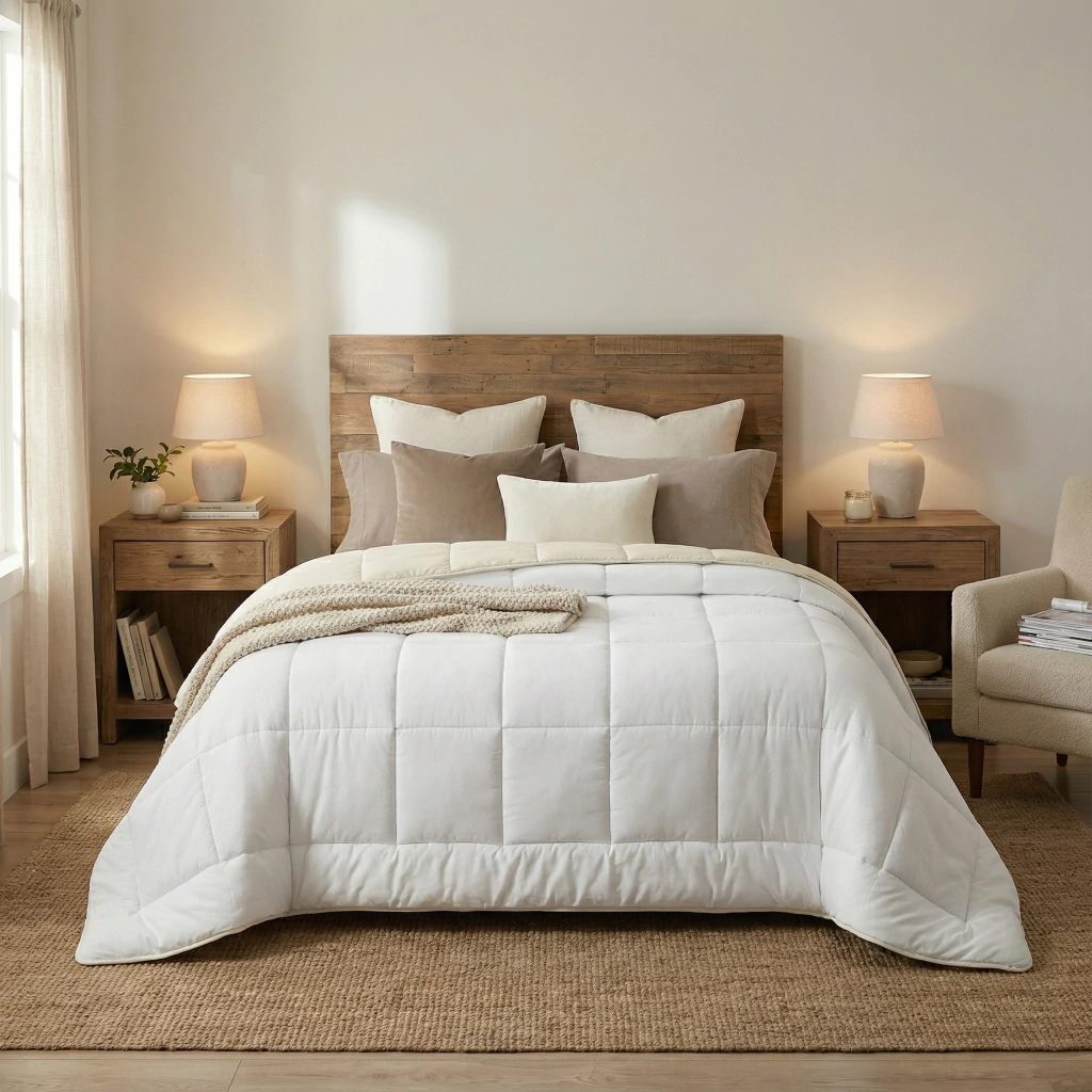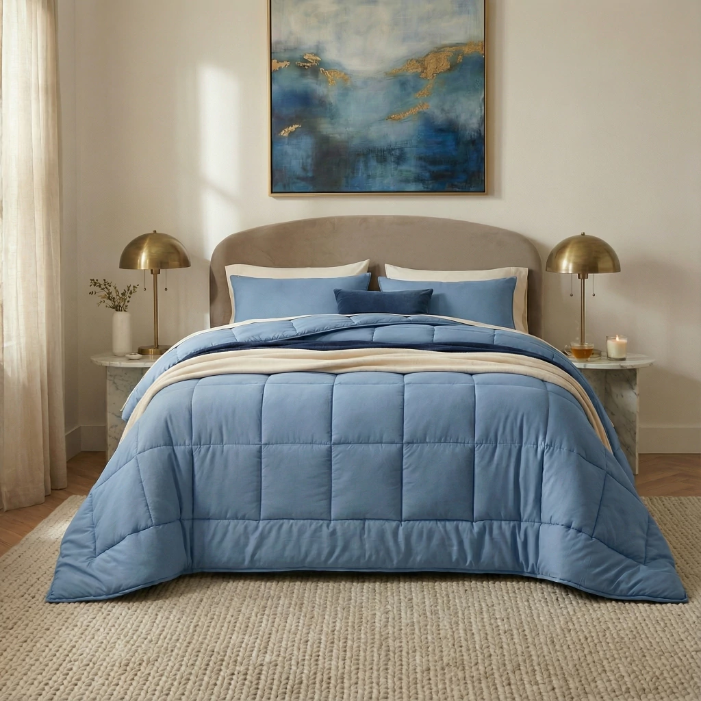 Su diseño reversible te permite renovar el estilo de tu cama con solo darlo vuelta, combinando funcionalidad y estética en un mismo producto. Además, su tejido transpirable se adapta a la temperatura de tu cuerpo, manteniéndote fresco en verano y abrigado en invierno.