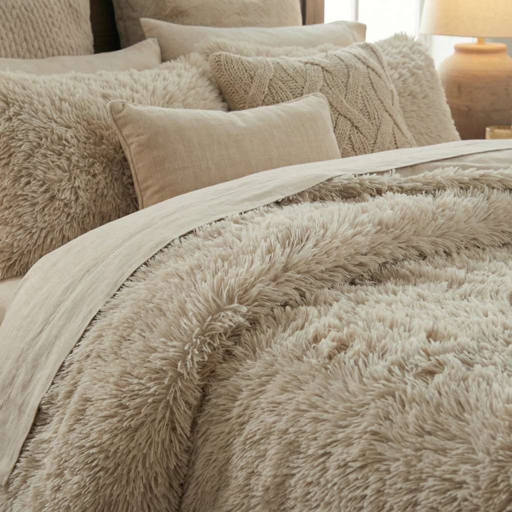 Su combinación de pelo extra largo y flannel premium te envuelve en calidez y comodidad, mientras su diseño elegante le da un toque sofisticado a tu dormitorio. El relleno de fibra siliconada aporta volumen sin peso, creando una sensación de ingravidez que te hace olvidar el mundo exterior.