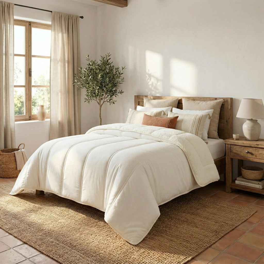 Ligero, esponjoso y con un poder térmico excepcional, este acolchado es la fusión perfecta entre diseño y funcionalidad. Su relleno de alta densidad garantiza un calor uniforme y duradero, para que disfrutes de un descanso placentero, noche tras noche.