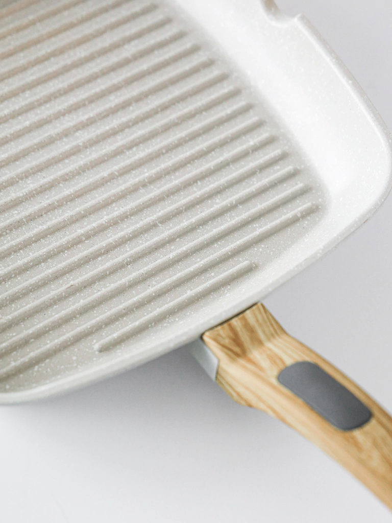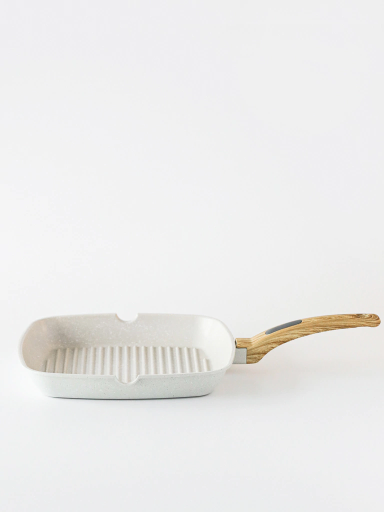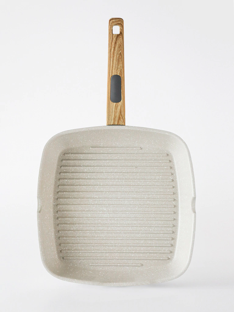 • Material: Base de aluminio con triple capa antiadherente y mango resistente de madera con silicona