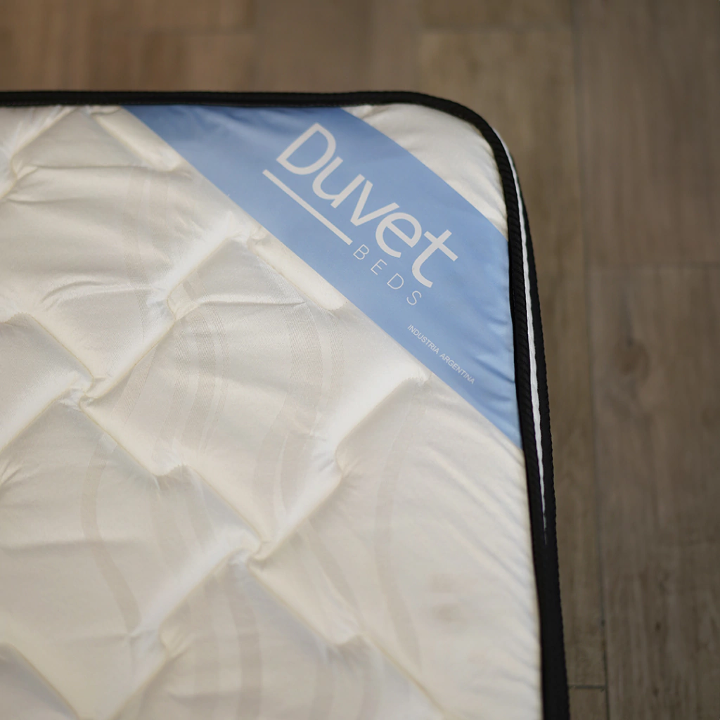 Totalmente matelaseado con doble capa de espuma y manta de fibra siliconada en tejido de punto elastizado de algodón con tratamiento de Aloe Vera, anti ácaros y anti humedad, garantiza un descanso saludable y reparador. Diseñado para no rotar, ofrece comodidad y practicidad.