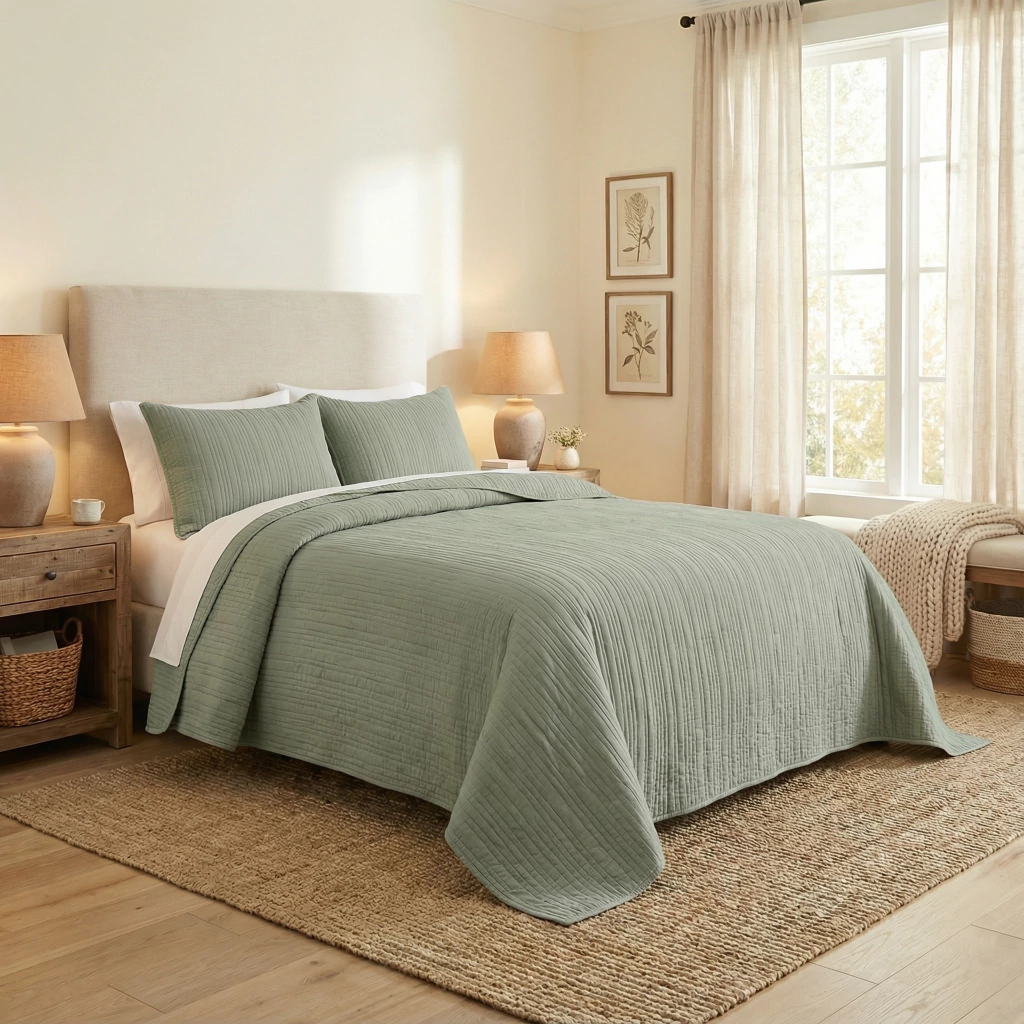Es el cubrecama perfecto para acompañar tu descanso. Es liviano y fresco lo que hace que sea ideal para Temporada Primavera/Verano. Incluye 2 fundas de almohadas haciendo juego.