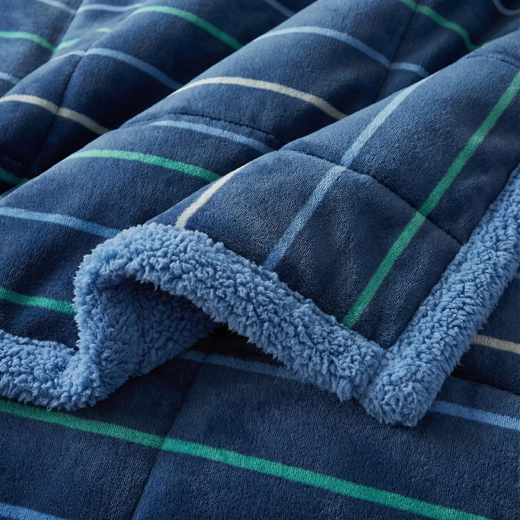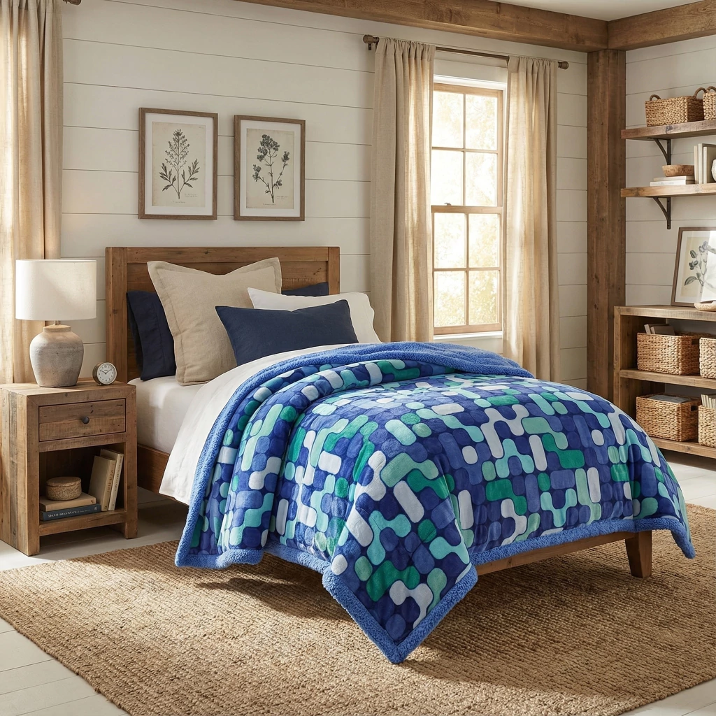 Fabricado con flannel soft, este edredón es ligero y suave al tacto, proporcionando un descanso acogedor y cálido. Su parte posterior está cubierta con suave corderito, agregando una capa adicional de confort y calidez.