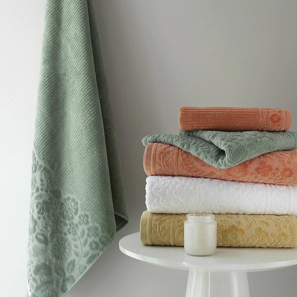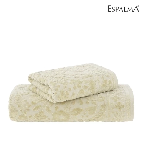Redescubrí el placer del baño con este exclusivo juego compuesto por una toalla de rostro y un toallón, confeccionados en jacquard de puro algodón de 430 g/m². Su diseño elegante y femenino, con cuerpo acanalado y delicada guarda de flores, aporta un toque de distinción a tu rutina diaria.