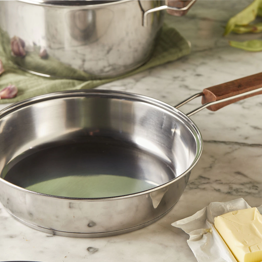 La sartén de cocina Duvet Home Línea Basic Nórdica está hecha con acero inoxidable de alto grado y cuenta con un triple fondo resistente a los impactos. Esta sartén es duradera y apta para todas las fuentes de cocción, incluyendo eléctrica, gas, infrarrojos, estufa de inducción y vitrocerámica.