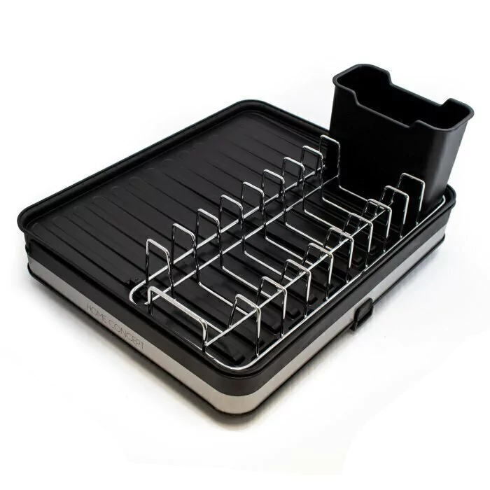Este escurreplatos está diseñado para secar tus platos de la mejor manera. Tiene un diseño elegante, disponible en 2 presentaciones, Black y Whte, el mismo cuenta con espacio para hasta 9 platos más bowls, cubertería y vasos. ¡Y es extensible! Lo cual permite colocar más cosas a secar, y te da mucho más espacio cuando no se está utilizando. Viene con un recipiente extraíble para cubiertos y una bandeja recoge gotas con un drenaje rebatible, para que el agua caiga directamente en la bacha.