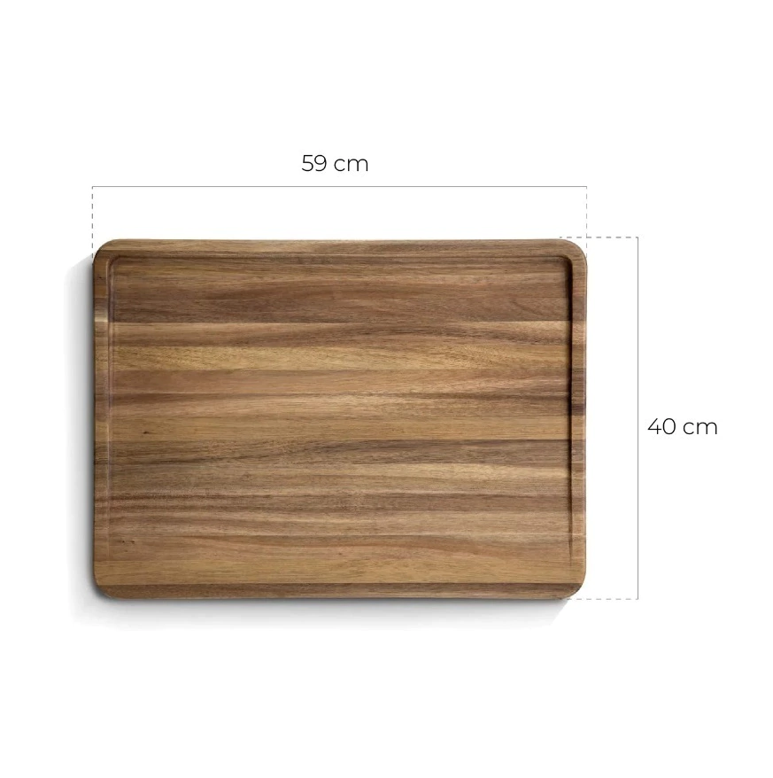 Esta tabla de corte generosa, diseñada específicamente para asados, está hecha de madera de acacia de alta calidad, brindando durabilidad y un toque natural a tus preparaciones culinarias.